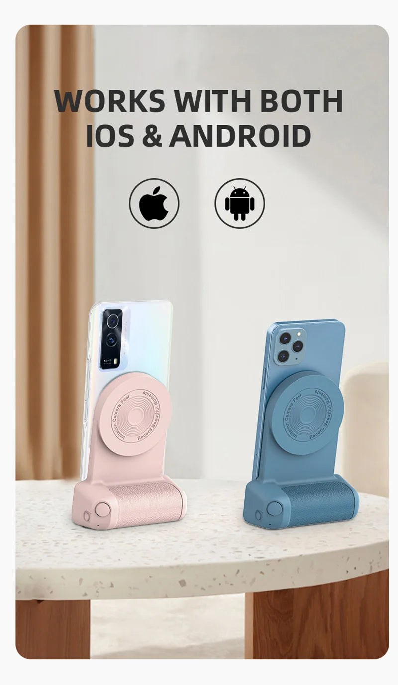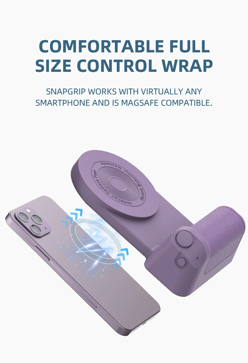Capture smooth, shake-free shots with SnapGrip! A Bluetooth magnetic cellphone handle with wireless charging, perfect for handheld stability and pro-level content creation.